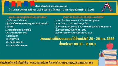 วันที่ 20 กันยายน พ.ศ. 2565 ดร.อรทัย โยธินรุ่งเรือง สุดสงวน ผู้อำนวยการวิทยาลัยเทคนิคสัตหีบ ได้มอบหมายให้ นางสาวเกศราภรณ์ แบบอย่าง เจ้าหน้าที่งานเเนะเเนวฯ ได้นำนักเรียนนักศึกษา รับทุนการศึกษาโครงการมอบทุนการศึกษาเเก่เด็กนักเรียนเเละเยาวชนผู้ยากไร้ในพื้นที่จังหวัดชลบุรี 📚🖋 ให้เเก่นักเรียนนักศึกษาของวิทยาลัยเทคนิคสัตหีบ ⚙️🛠 ณ ศาลาประชาคมเทศบาลเมืองบ้านสวน อำเภอเมืองชลบุรี จังหวัดชลบุรี
