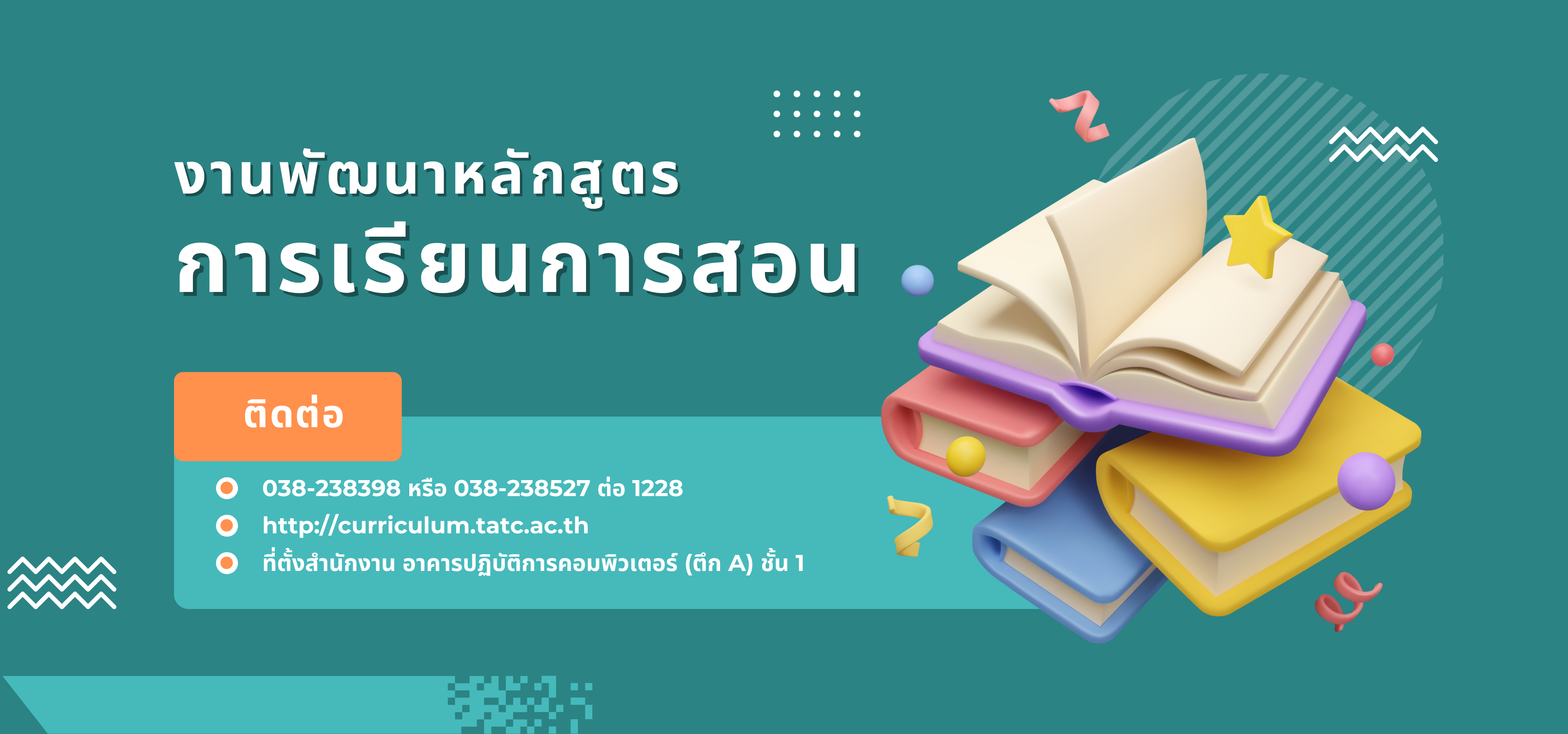 ติดต่อสอบถามเพิ่มเติม งานพัฒนาหลักสูตรฯ เบอร์โทร : 038-238398 หรือ 038-238527 ต่อ 1228